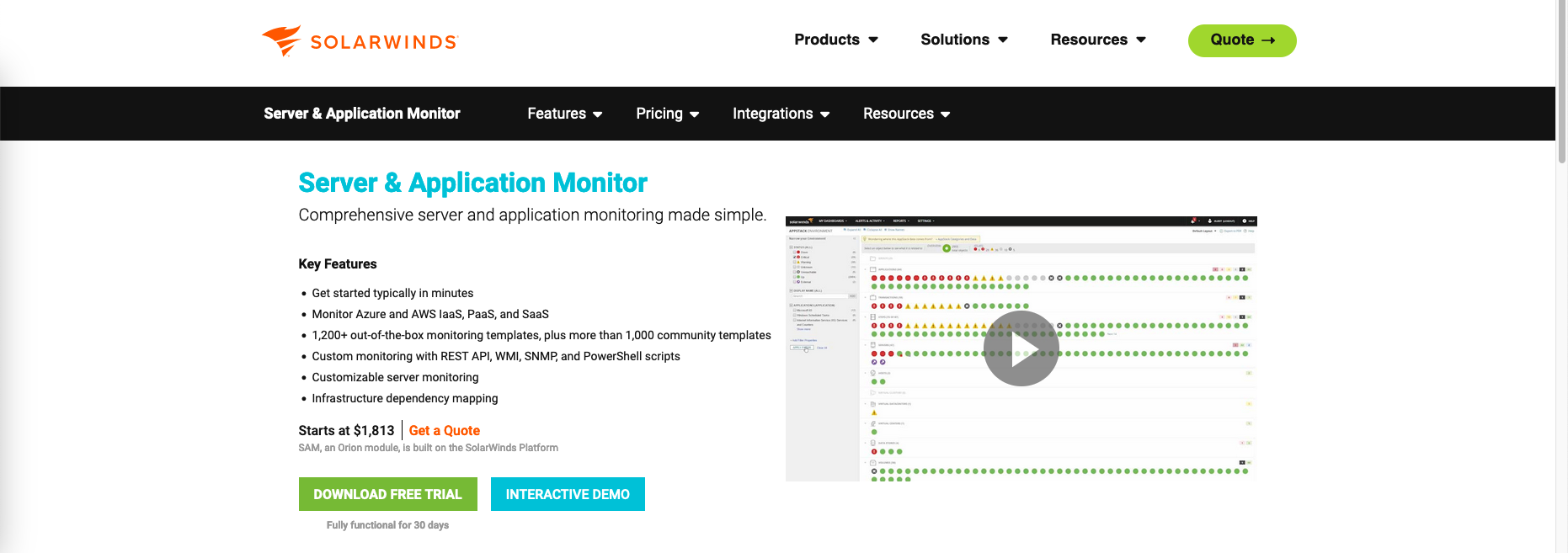 SolarWinds Server & Application Monitor (SAM) is a software tool for monitoring and managing the performance and availability of servers and applications in IT environments. It provides real-time monitoring of server metrics like CPU and memory usage and application performance.
