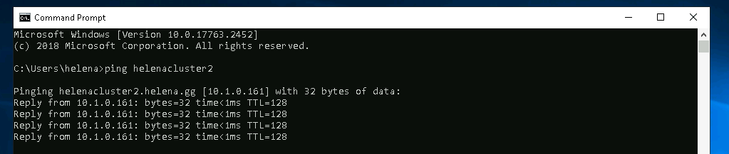 And if we ping the helenacluster2, we should get a return IP Address of the currently active node