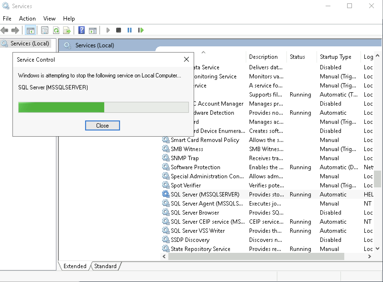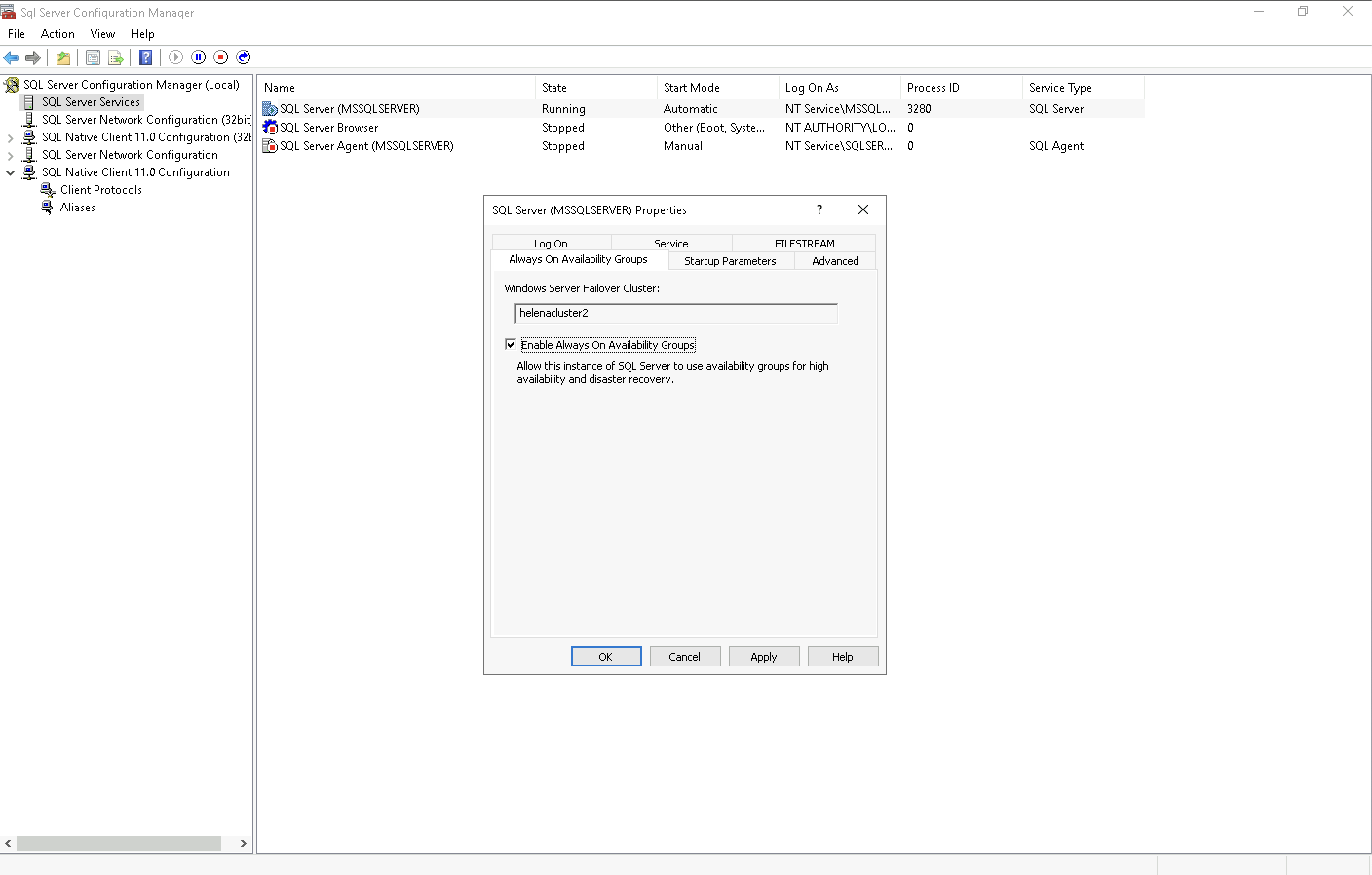 Now let’s try stopping the SQL Service on Win1, this will trigger the listener to go to the next available node, which is the Win2