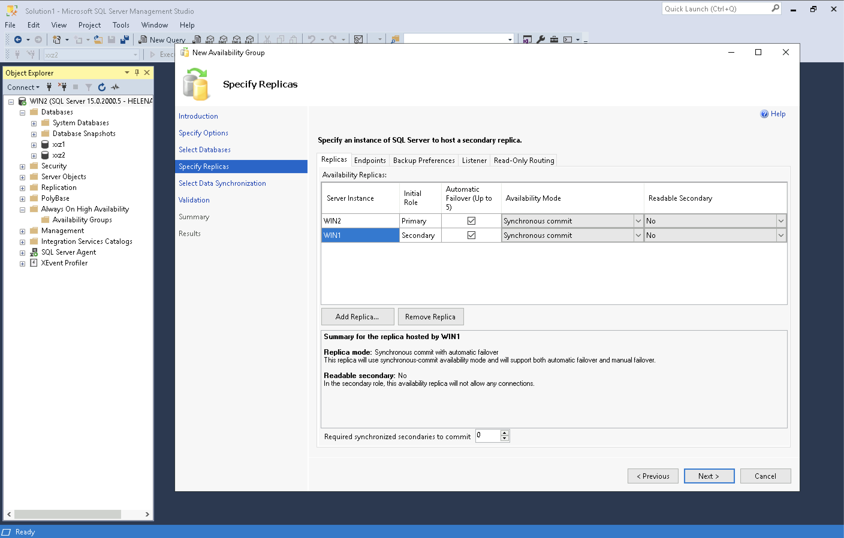 Now open SSMS, on Alway On Availabilty Groups, right click and add new