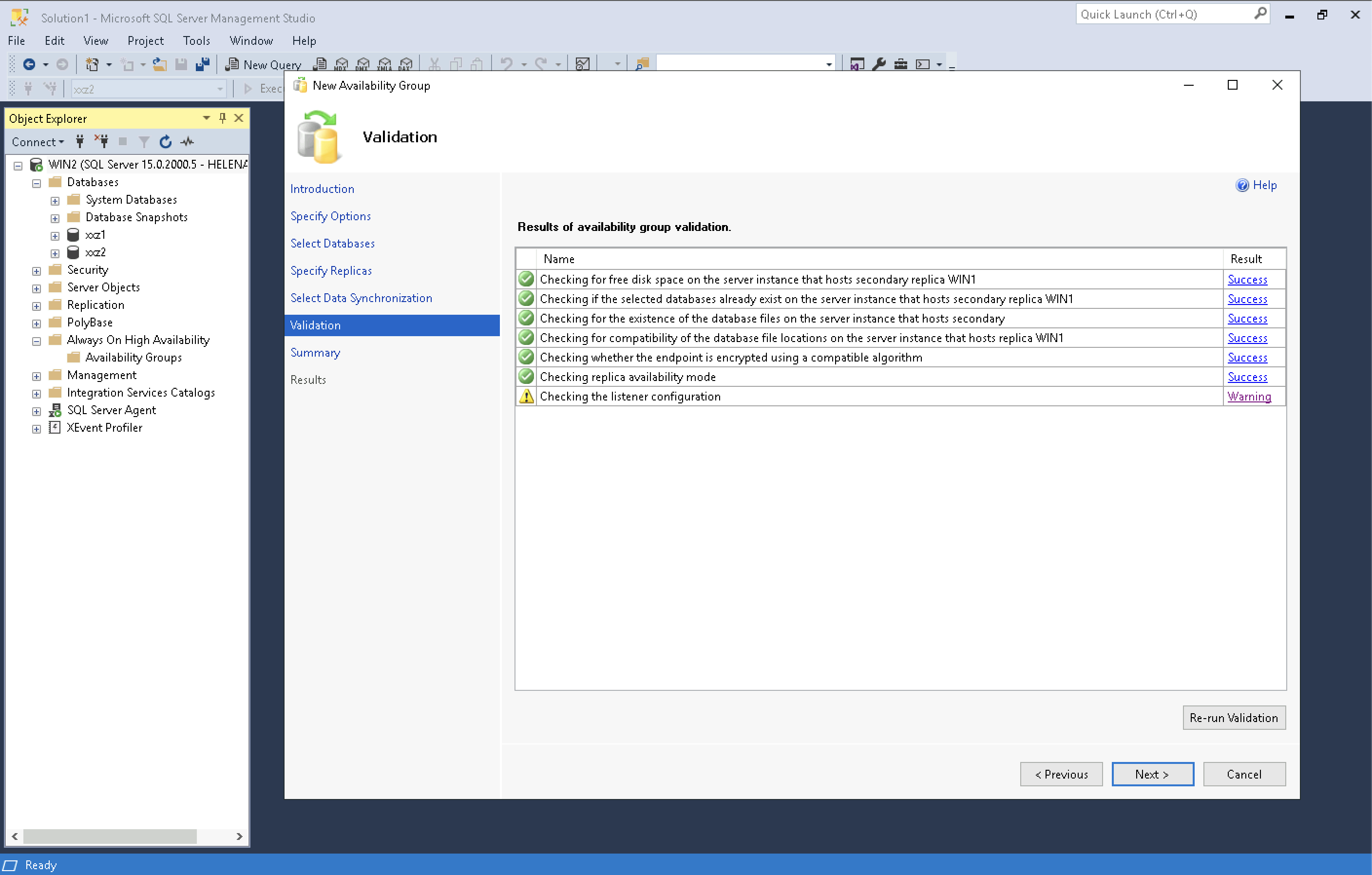 Run the validation, the listener will have a warning because we haven’t set it up yet, then select next until finish