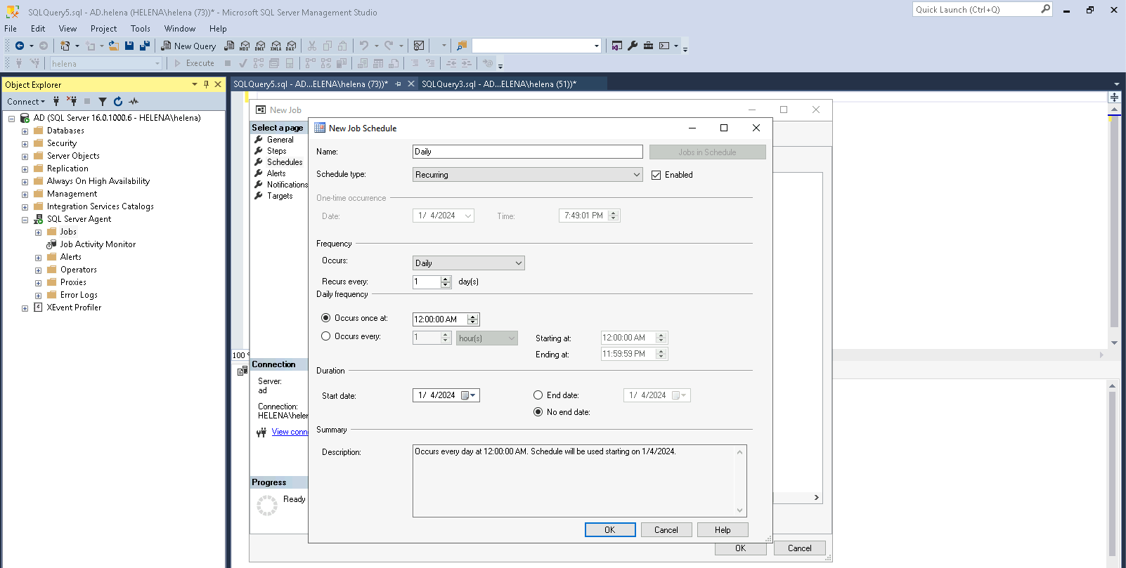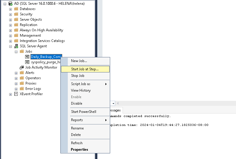 Now we create a Job to execute 2 procedures created above, we name the Job Daily_Backup_Conv