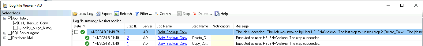 To finsih things up, i like to log the operation onto Event Viewer everytime the job executes