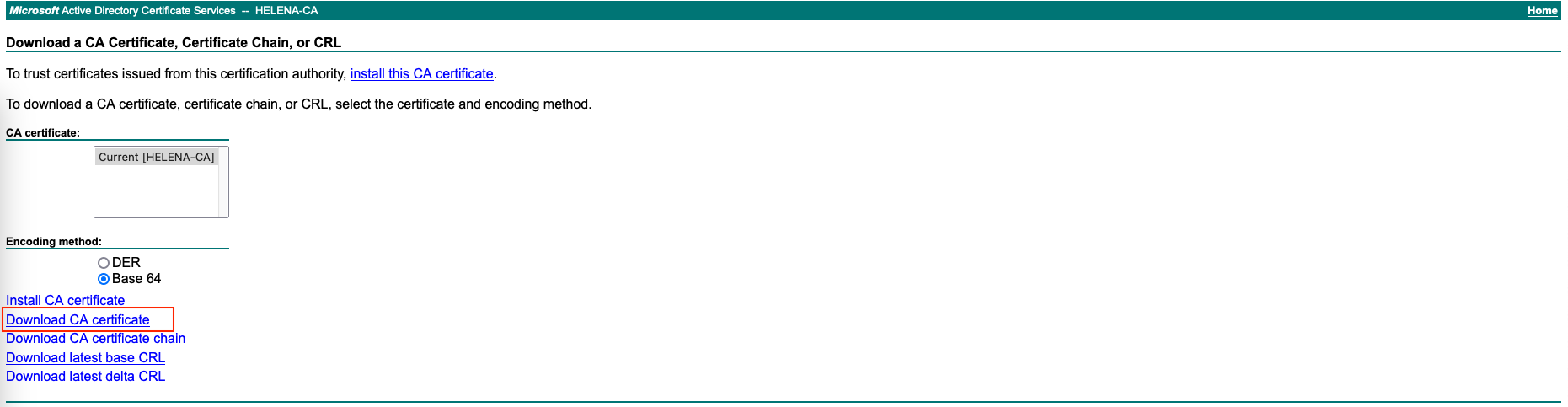 First download the Root-CA from the CA server
