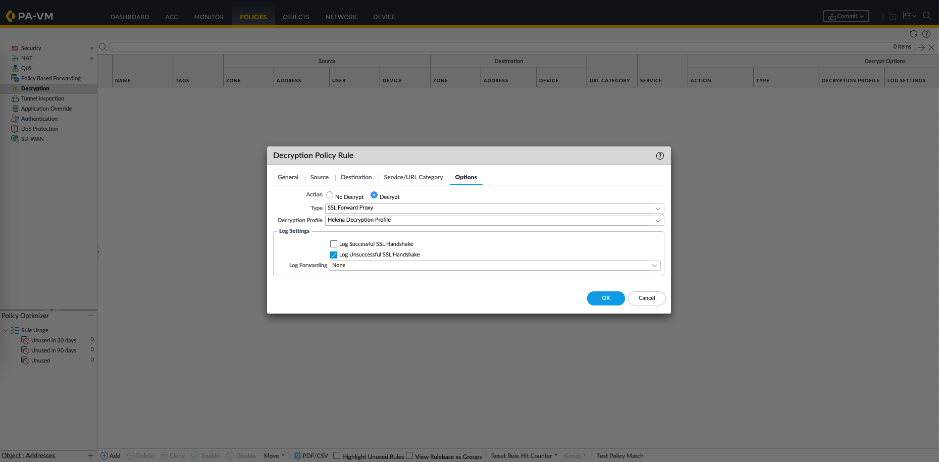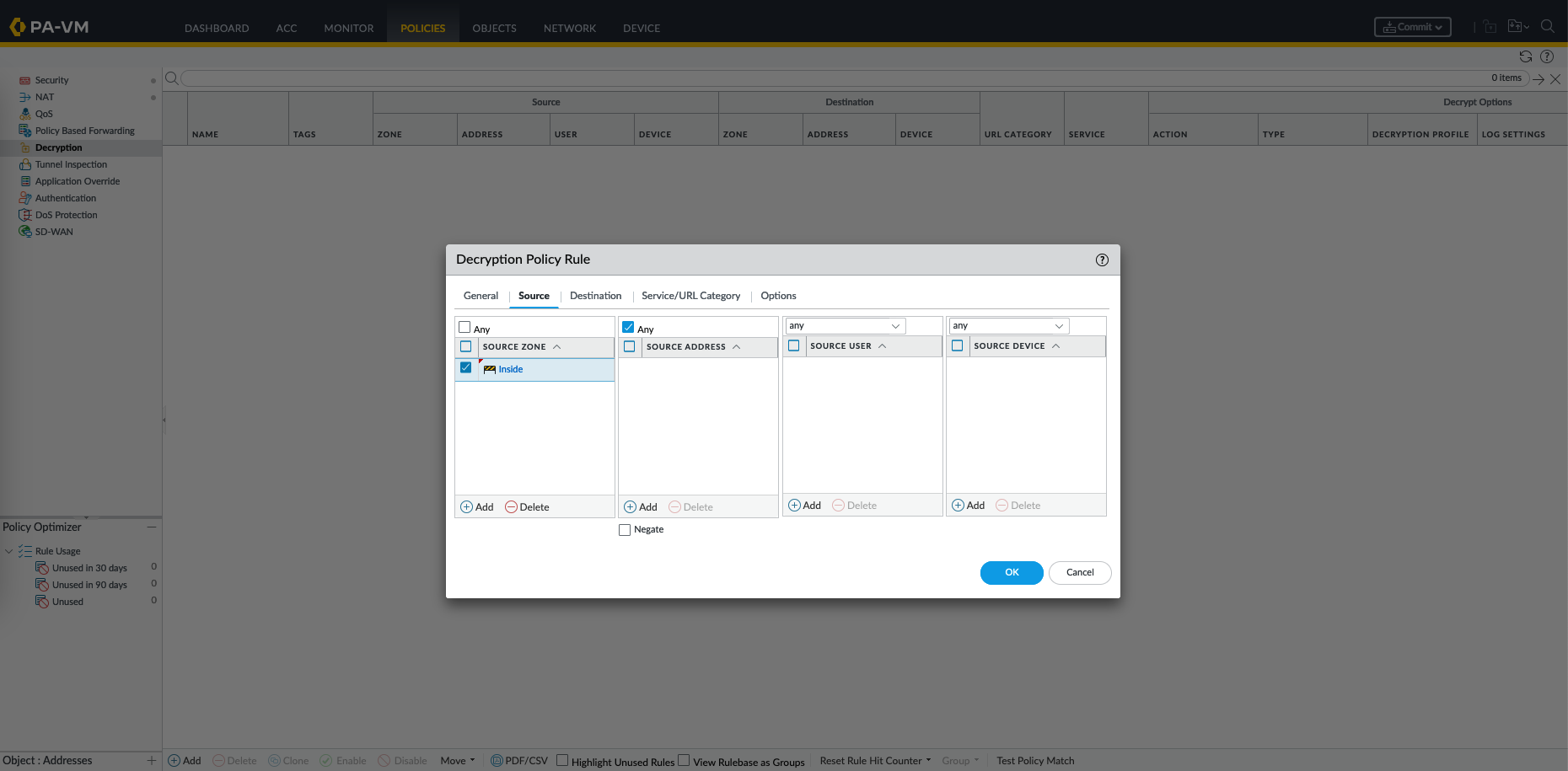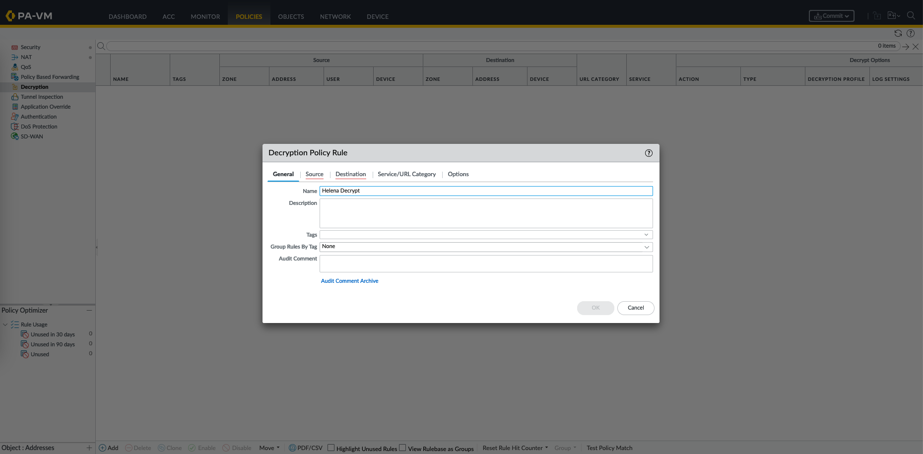 Next we create the Decryption Policy, on Policies » Decryption, create new