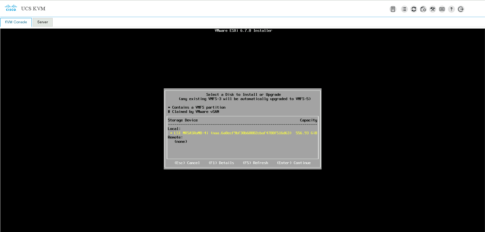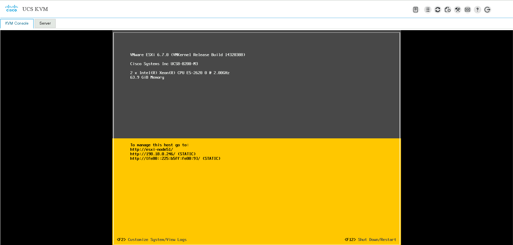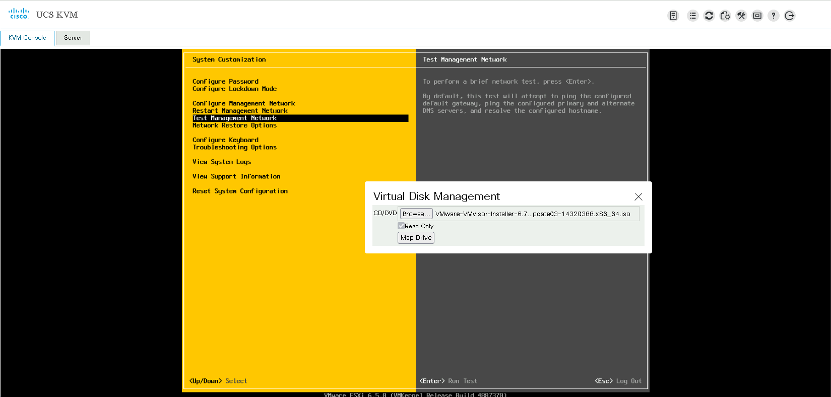 To install or upgrade an ESXi firmware through UCS Manager with ISO installer, launch UCS Manager and select ‘KVM Console’ on the target host