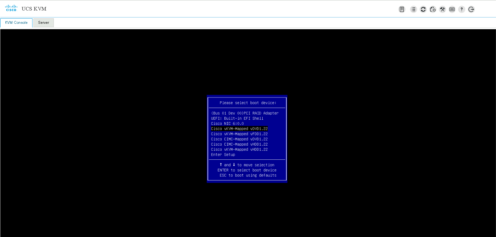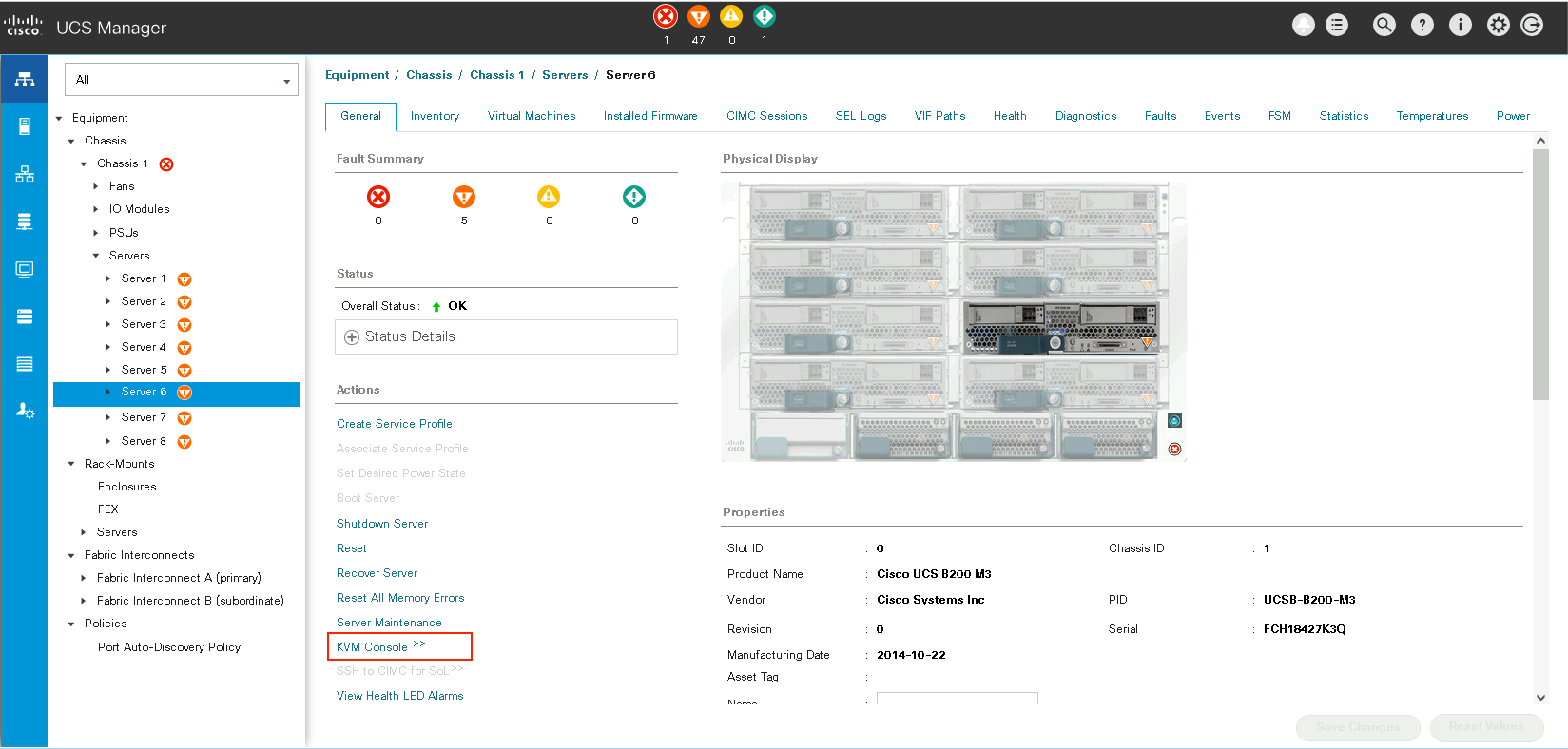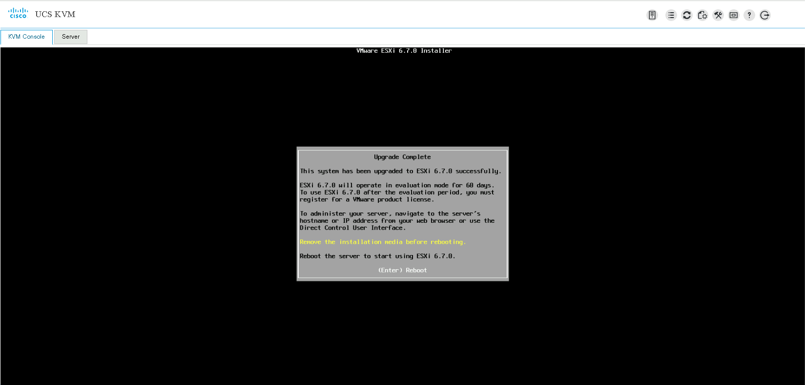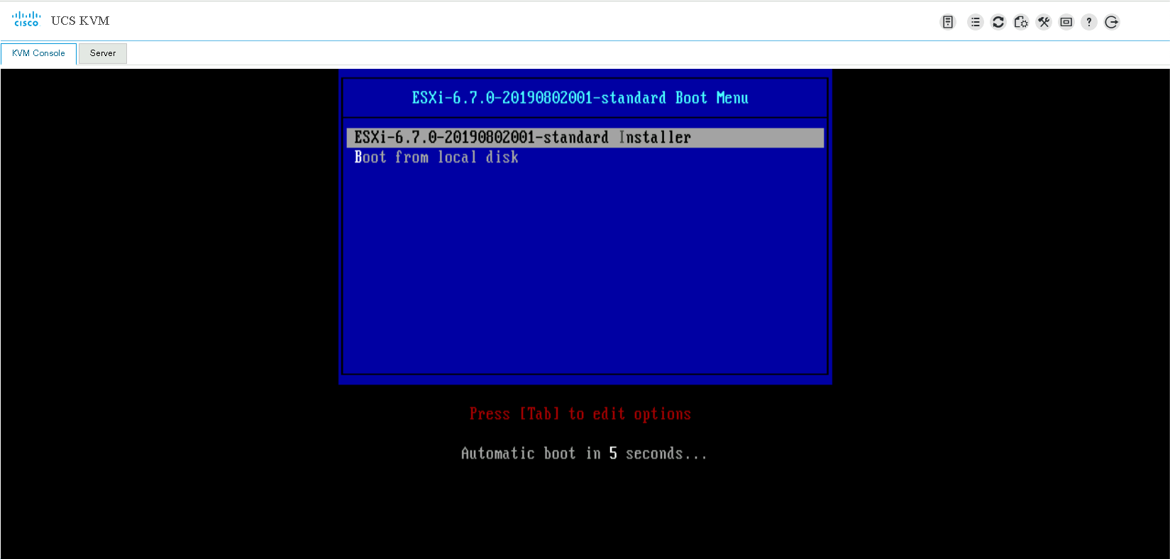 To install or upgrade an ESXi firmware through UCS Manager with ISO installer, launch UCS Manager and select ‘KVM Console’ on the target host
