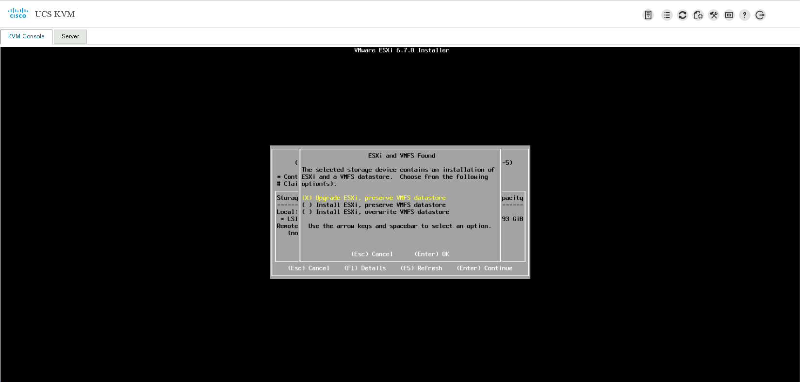And this is the only difference for upgrading or installing, because we’re upgrading the ESXi firmware let’s select Upgrade